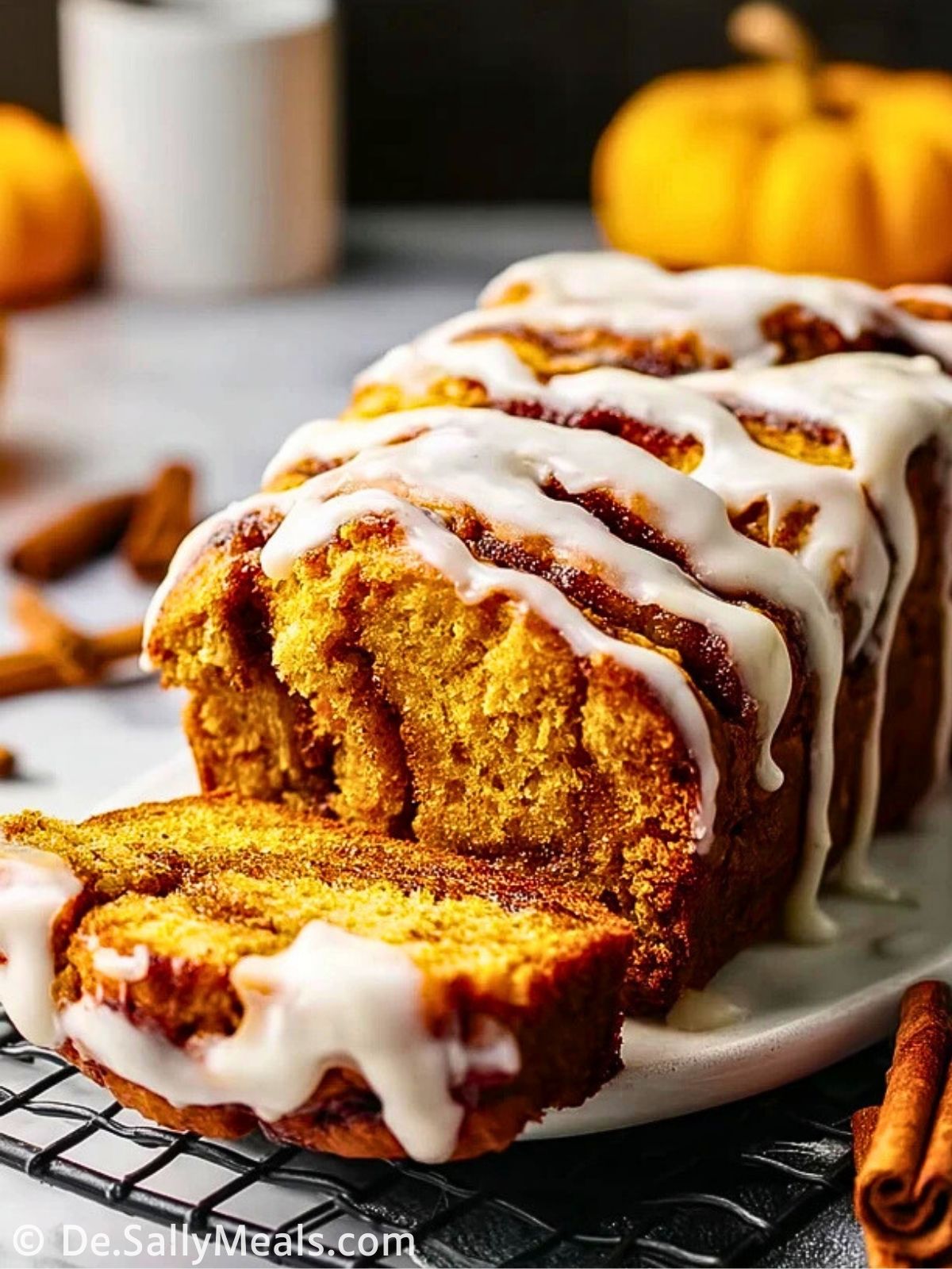 Ein wunderbar weiches, saftiges Kürbisbrot im Zimtschnecken-Stil mit einer aromatischen Frischkäseglasur – perfekt für den Herbst, das Sonntagsfrühstück oder zum Kaffee!