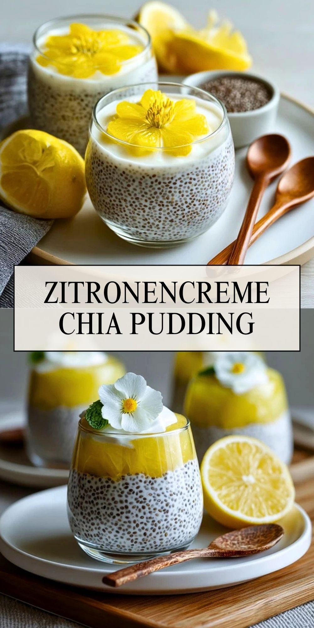 Besonders schön an diesem Rezept ist der Kontrast der Schichten: unten der sanfte Chia Pudding, darüber eine samtige Zitronencreme, die jede Portion lebendig und sonnig wirken lässt. Ob als Meal-Prep für den nächsten Morgen, als leichter Nachtisch oder als Hingucker im Glas für Gäste – dieses Rezept passt zu vielen Gelegenheiten.